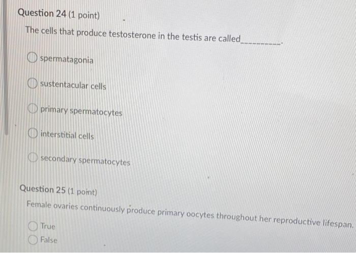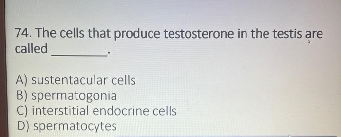 Solved 74 The Cells That Produce Testosterone In The Testis Chegg Com